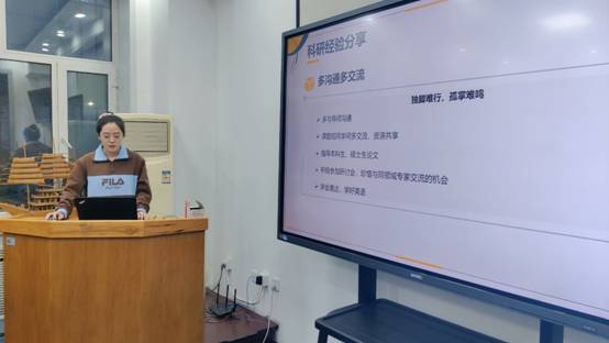 胡琮雪同学首先对国家奖学金进行了介绍,包括奖励范围、奖励数目和奖励金额。分享的第二部分为科研经验的分享,她认为同学们在进行科研工作首先要养成良好的学习习惯和科研思维。良好的习惯是成功的基石。要为自己制定计划并严格执行。明确研究方向后要制定切实可行的实施方案,不忘初心。课题组每位同学每周要至少精读一篇文章并做好总结,写好文献综述。每周两次学习心得和一次课题进展汇报,能够帮助我们更好的推进课题进度。其次,我们还要多沟通,多交流。“独脚难行,孤掌难鸣”,在科研的道路上要多导师和课题组的同学交流,同课题组的同学并不是竞争关系,而是合作共赢的关系。通过指导本科生和硕士生的毕业设计对我们来说也是一个学习和提升的过程,这个过程中往往会给我们一些启发。积极参加一些研讨会,珍惜与同领域专家交流学习的机会。最后,科研工作还需要培养一个良好心态,要有抗压能力但不能麻木,要有快速恢复的能力。做到不以物喜,不以己悲。在分享会的最后胡琮雪同学全面的展示了博士在读期间个人的研究成果和收获,希望大家多多交流。